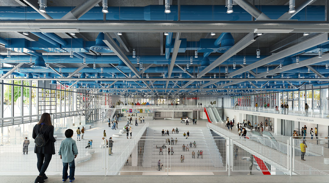 This major aspect of intervention seeks to rediscover and amplify the generosity of the Centre Pompidou’s initial vision by establishing visual and physical connections between the different programmes. New elements open up the spaces to each other as well as to their immediate urban environment. Light penetrates deeply into the spaces, highlighting the paths in a more engaging and welcoming way. The extension of the city into the heart of the building becomes one of the project’s core intentions.